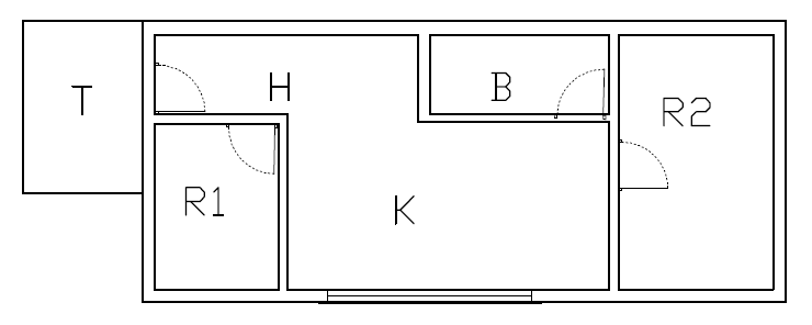 Family house, with apartments for the rent in the attic. On disposition are 2 apartments of about 55 square meters, with air conditioning. Every apartment has 2 bedrooms(R1 and R2), hall (H), kitchen K), bathroom (B) and terrace (T). Very fresh and quiet.